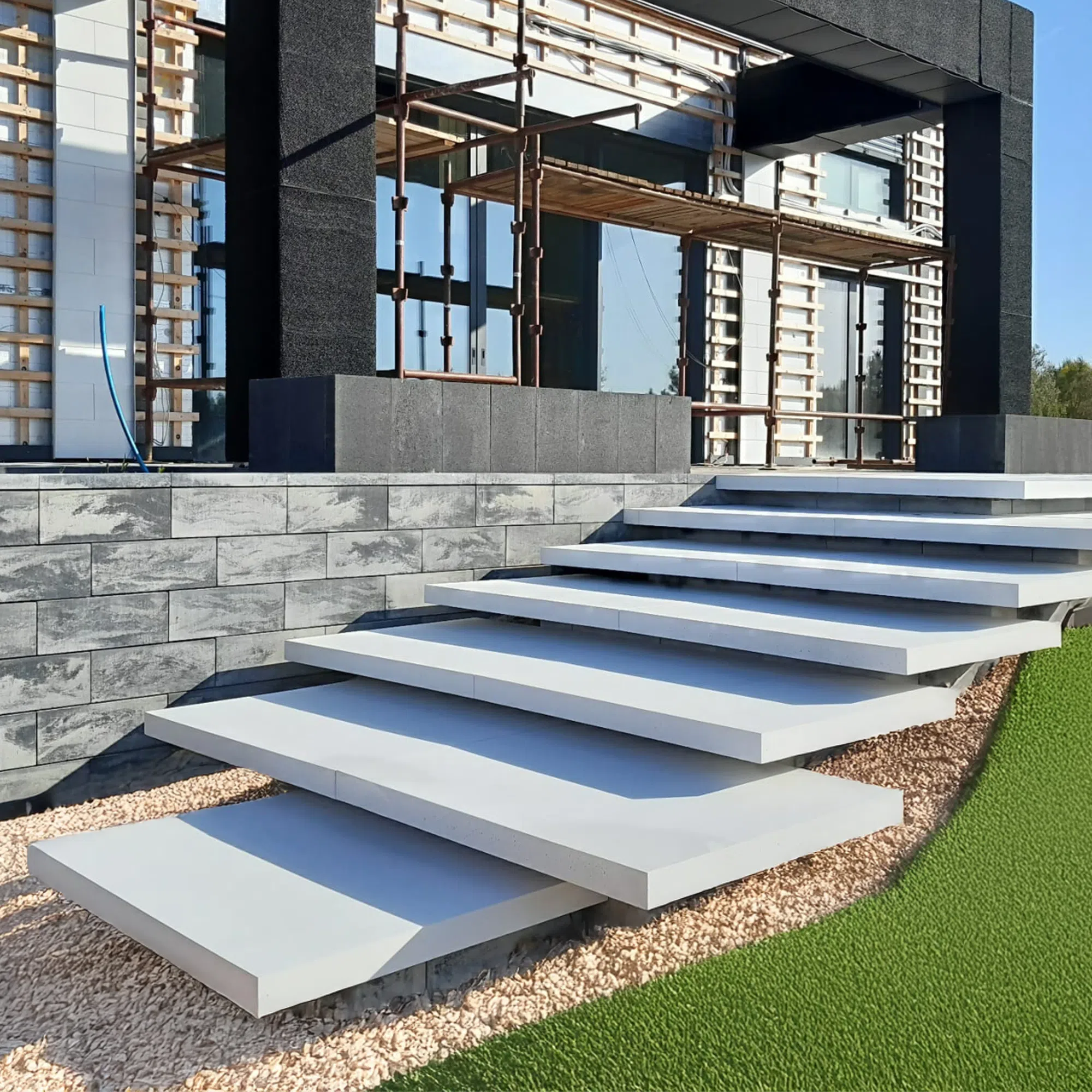 Jednym z kluczowych aspektów schodów lewitujących jest dobór odpowiednich materiałów konstrukcyjnych, które muszą łączyć wysoką wytrzymałość z estetyką. Beton architektoniczny odgrywa tutaj szczególną rolę, ponieważ pozwala tworzyć masywne, a jednocześnie wizualnie lekkie stopnie o precyzyjnych kształtach. Dzięki nowoczesnym technologiom prefabrykacji betonowe stopnie mogą mieć idealnie gładką powierzchnię, jednolitą strukturę i wysoką odporność na obciążenia. Beton doskonale wpisuje się w stylistykę nowoczesnych wnętrz, a jego neutralna kolorystyka pozwala na łatwe łączenie z innymi materiałami.